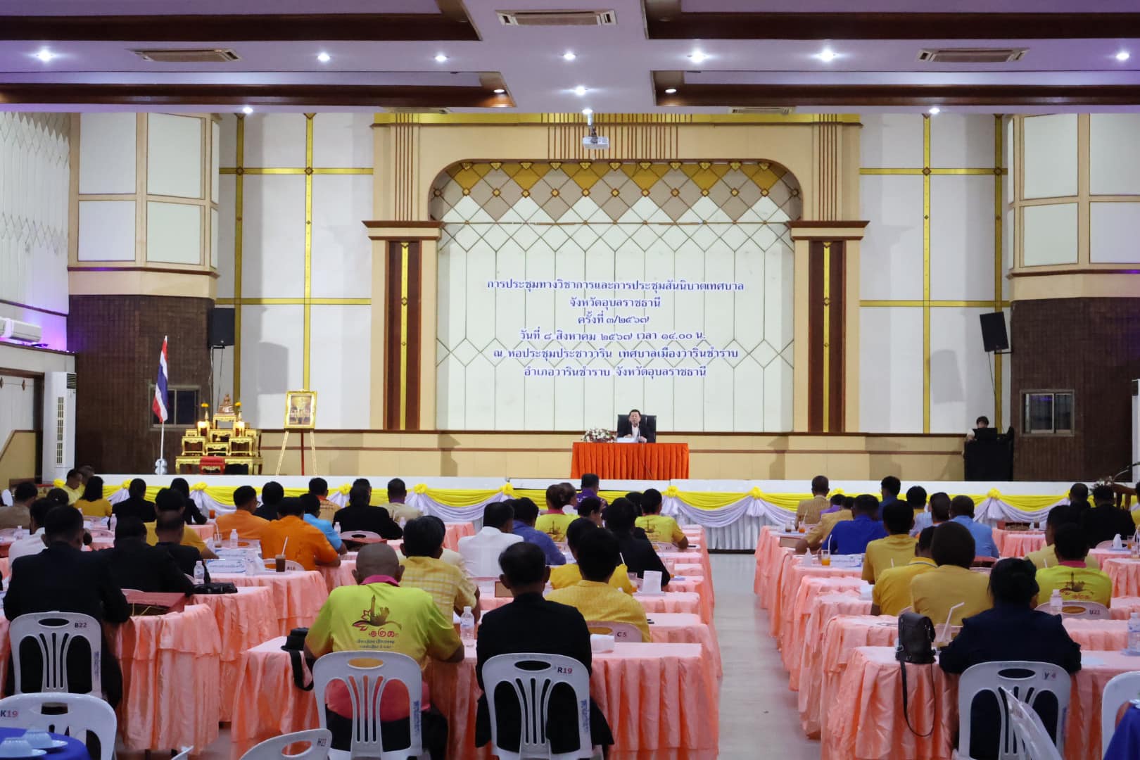 นางสาวกัลยา ลักษณะงาม นายกเทศมนตรีเมืองแจระแม พร้อมด้วยนายจรูญ ขวัญหวัญ ปลัดเทศบาล ร่วมการประชุมทางวิชาการและการประชุมสันนิบาตเทศบาลจังหวัดอุบลราชธานี ครั้งที่ 3 ประจำปี 2567 โดยมีนายจีระชัย ไกรกังวาร นายกเทศมนตรีเมืองวารินชำราบ เป็นประธานในการประชุม เพื่อชี้แจงระเบียบ ข้อบังคับต่างๆ ของเทศบาล พร้อมร่วมพิจารณาคัดเลือกกรรมาธิการสันนิบาตเทศบาลแห่งประเทศไทย พร้อมนี้ นายสำเนียง สิมมาวัน ท้องถิ่นจังหวัดอุบลราชธานี และคณะ ได้มาพบปะแจ้งข้อราชการ และตอบข้อซักถาม ณ หอประชุมประชาวาริน เทศบาลเมืองวารินชำราบ อำเภอวารินชำราบ จังหวัดอุบลราชธานี