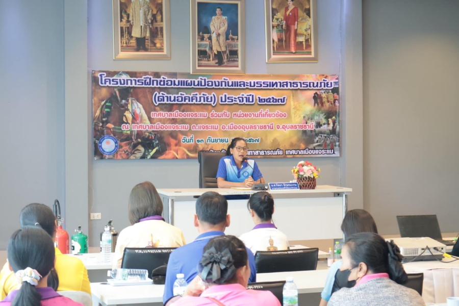 "โครงการฝึกซ้อมแผนป้องกันและบรรเทาสาธารณภัยด้านอัคคีภัย เทศบาลเมืองแจระแม ประจำปี พ.ศ. 2567"