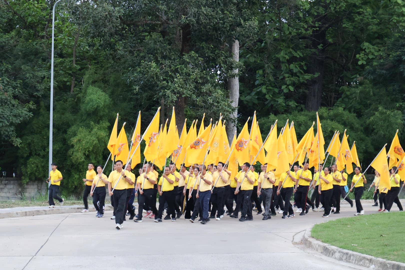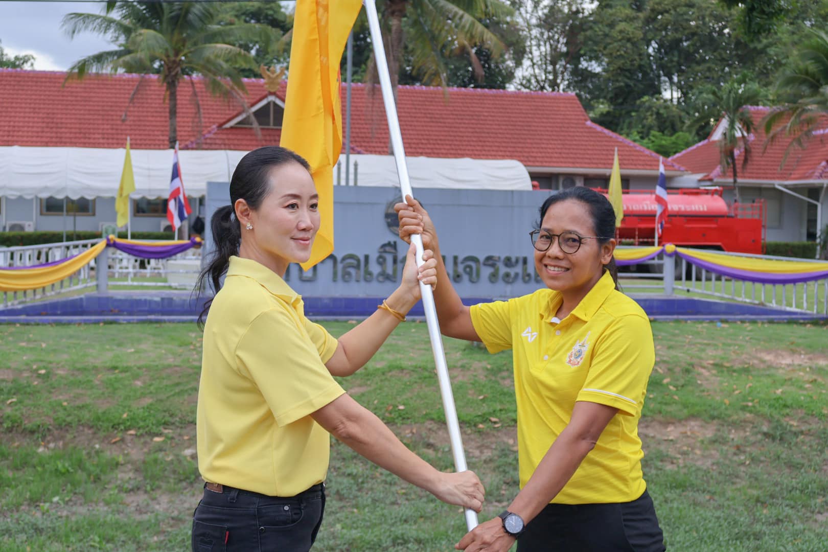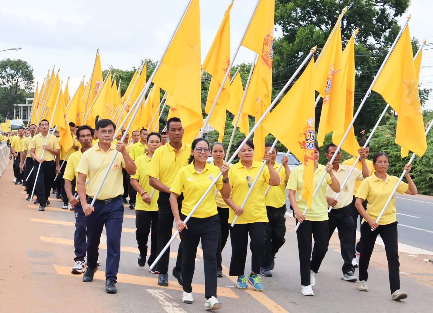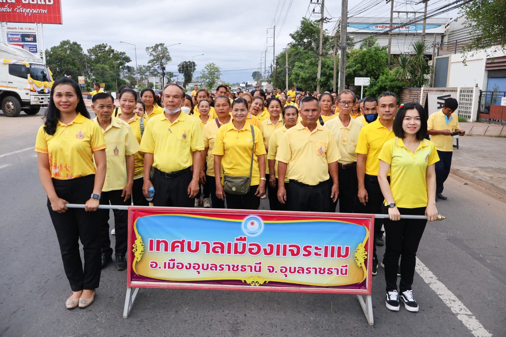 นางสาวกัลยา ลักษณะงาม นายกเทศมนตรีเมืองแจระแม พร้อมด้วยคณะผู้บริหารเทศบาล สมาชิกสภาเทศบาล กำนัน ผู้ใหญ่บ้าน ผู้นำชุมชน ผอ.รพสต.ทัพไทย หัวหน้าส่วนราชการ พนักงานเทศบาล เจ้าหน้าที่อสม. และประชาชนในพื้นที่ ร่วมกิจกรรมเดิน วิ่ง ปั่น ธงตราสัญลักษณ์ งานเฉลิมพระเกียรติพระบาทสมเด็จพระเจ้าอยู่หัว เนื่องในโอกาสพระราชพิธีมหามงคลเฉลิมพระชนมพรรษา 6 รอบ 28 กรกฎาคม 2567 พร้อมกันทั่วประเทศ โดยนางพิศทยา ไชยสงคราม นายกเทศมนตรีนครอุบลราชธานี ส่งมอบธงให้นางสาวกัลยา ลักษณะงาม นายกเทศมนตรีเมืองแจระแม ที่หน้าสำนักงานเทศบาลเมืองแจระแม จากนั้นได้นำคณะเดิน วิ่ง ปั่น ไปยังจุดศาลปกครองอุบลราชธานีและส่งมอบธงให้นางทรงลักษณ์ วรภัย รองผู้ว่าราชการจังหวัดอุบลราชธานี เพื่อนำเดิน วิ่ง ปั่นธงตราสัญลักษณ์งานเฉลิมพระเกียรติพระบาทสมเด็จพระเจ้าอยู่หัว เนื่องในโอกาสพระราชพิธีมหามงคลเฉลิมพระชนมพรรษา 6 รอบ 28 กรกฎาคม 2567 ไปยังศาลากลางจังหวัดอุบลราชธานี ตำบลแจระแม อำเภอเมืองอุบลราชธานี จังหวัดอุบลราชธานี