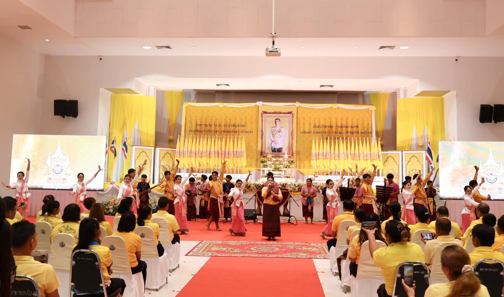 นางสาวกัลยา ลักษณะงาม นายกเทศมนตรีเมืองแจระแม มอบหมายให้นายสุขสันต์ ณ อุบล รองนายกเทศมนตรี พร้อมด้วยนายสถิตย์ พิลาเลิศ รองนายกเทศมนตรี นางสมศรี กองสุข เลขานุการนายกเทศมนตรี พนักงานเทศบาลและประชาชนในพื้นที่ ร่วมกิจกรรมเฉลิมฉลองธงตราสัญลักษณ์ งานเฉลิมพระเกียรติ พระบาทสมเด็จพระเจ้าอยู่หัว เนื่องในโอกาสพระราชพิธีมหามงคลเฉลิมพระชนมพรรษา 6 รอบ 28 กรกฎาคม 2567 โดยรับชมการแสดงพื้นบ้าน การแสดงศิลปวัฒนธรรมท้องถิ่น การแสดงโปงลางศิลป์ไทรเงิน จากนักเรียนโรงเรียนพิบูลมังสาหาร อำเภอพิบูลมังสาหาร จังหวัดอุบลราชธานี ณ หอประชุมศาลากลางจังหวัดอุบลราชธานี