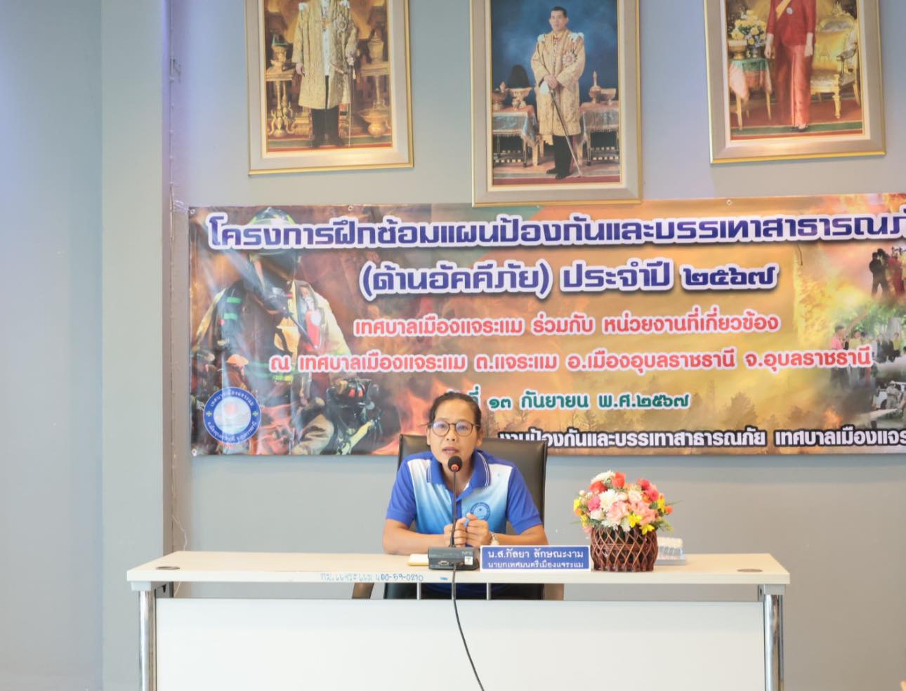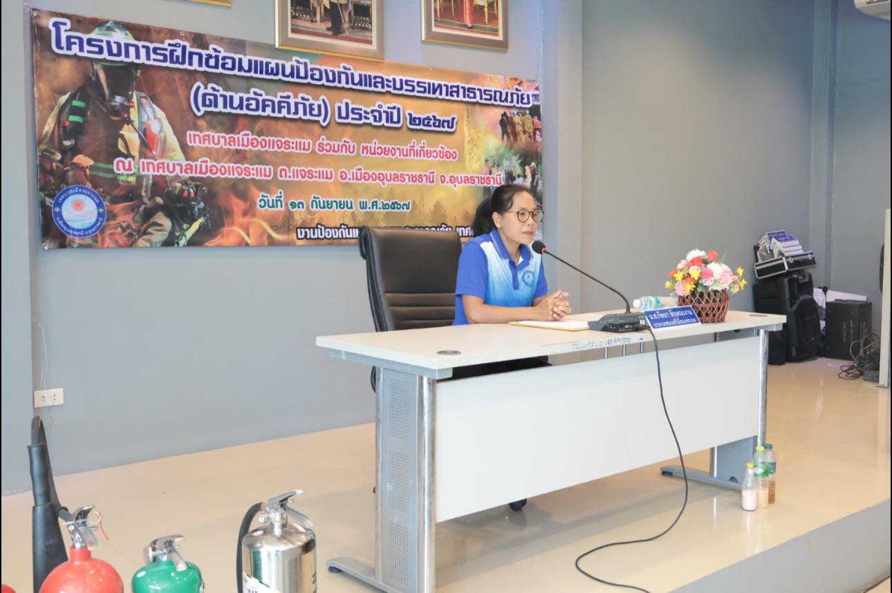 งานป้องกันและบรรเทาสาธารณภัย เทศบาลเมืองแจระแม ได้จัด “โครงการฝึกซ้อมแผนป้องกันและบรรเทาสาธารณภัยด้านอัคคีภัย เทศบาลเมืองแจระแม ประจำปี พ.ศ. 2567“ โดยนางสาวกัลยา ลักษณะงาม นายกเทศมนตรีเมืองแจระแม ให้เกียรติเป็นประธานในพิธีเปิดโครงการดังกล่าว วัตถุประสงค์ของโครงการฯ เพื่อให้เจ้าหน้าที่ป้องกันและบรรเทาสาธารณภัย พนักงานเทศบาลเมืองแจระแม สมาชิกสภาเทศบาลเมืองแจระแม ผู้นำชุมชน อสม. เทศบาลเมืองแจระแมและประชาชนที่เข้าร่วม มีความรู้ในการป้องกันและระงับอัคคีภัย รู้ หลัก วิธีในการระงับอัคคีภัย ที่ถูกต้อง รวมถึงการพัฒนาศักยภาพเจ้าหน้าที่งานป้องกันและบรรเทาสาธารณภัย โดยได้รับการสนับสนุนวิทยากรครูฝึกจาก เทศบาลนครอุบลราชธานี ในการฝึกในครั้งนี้