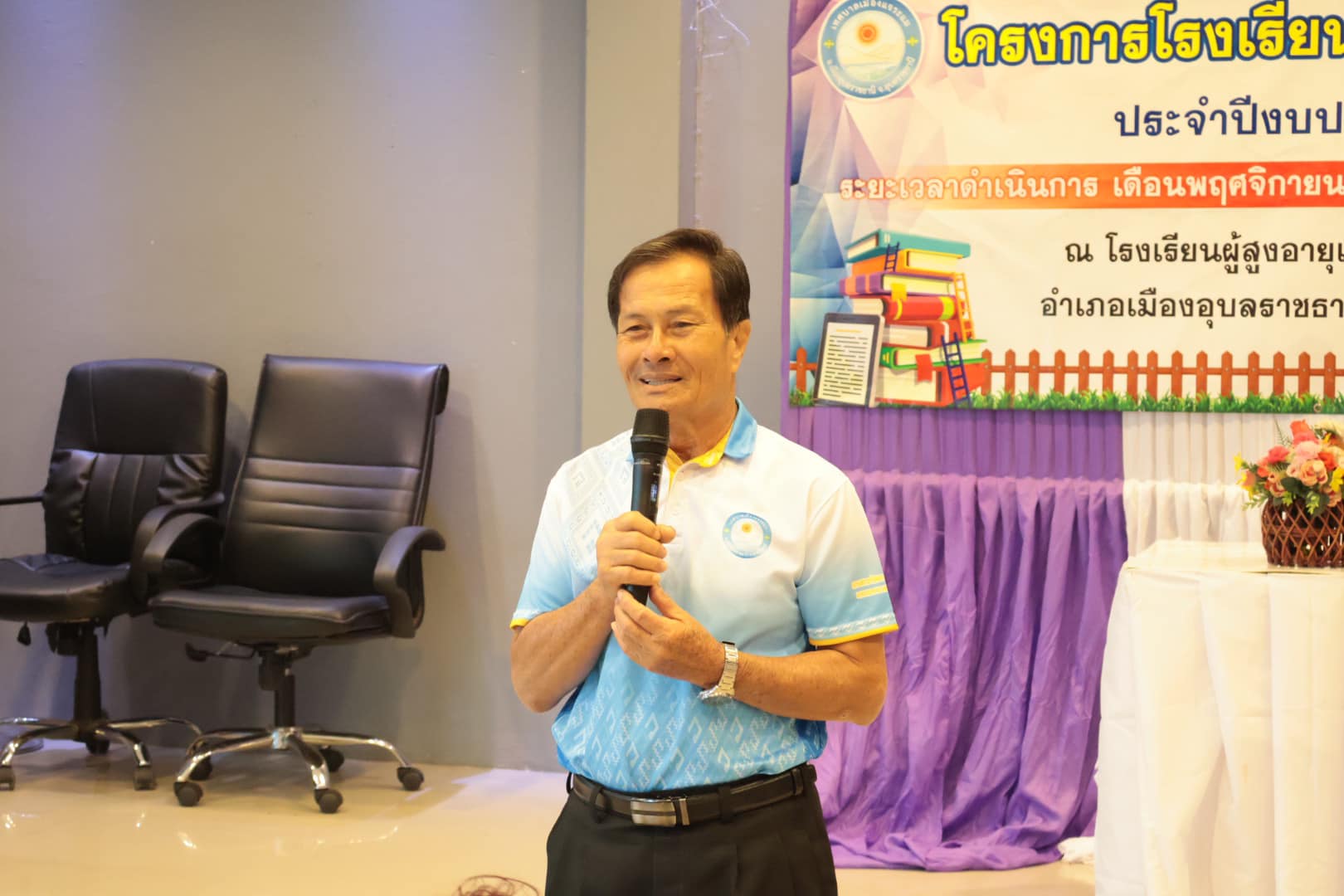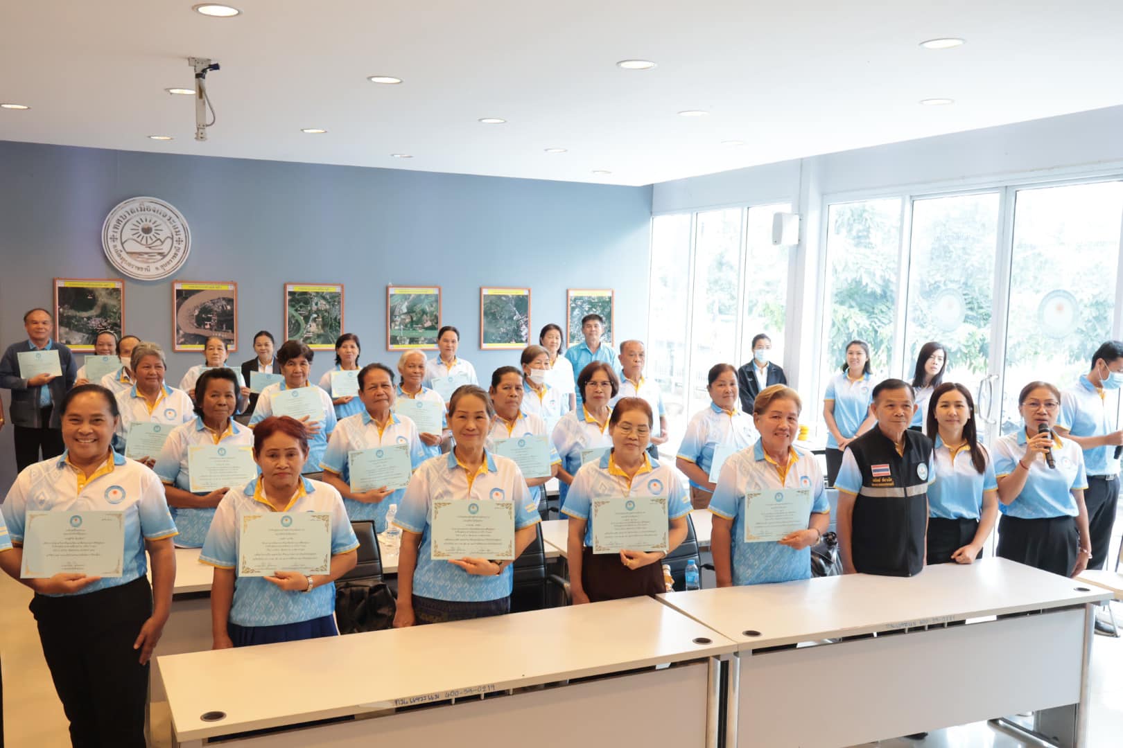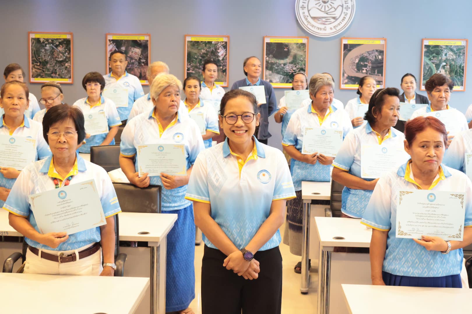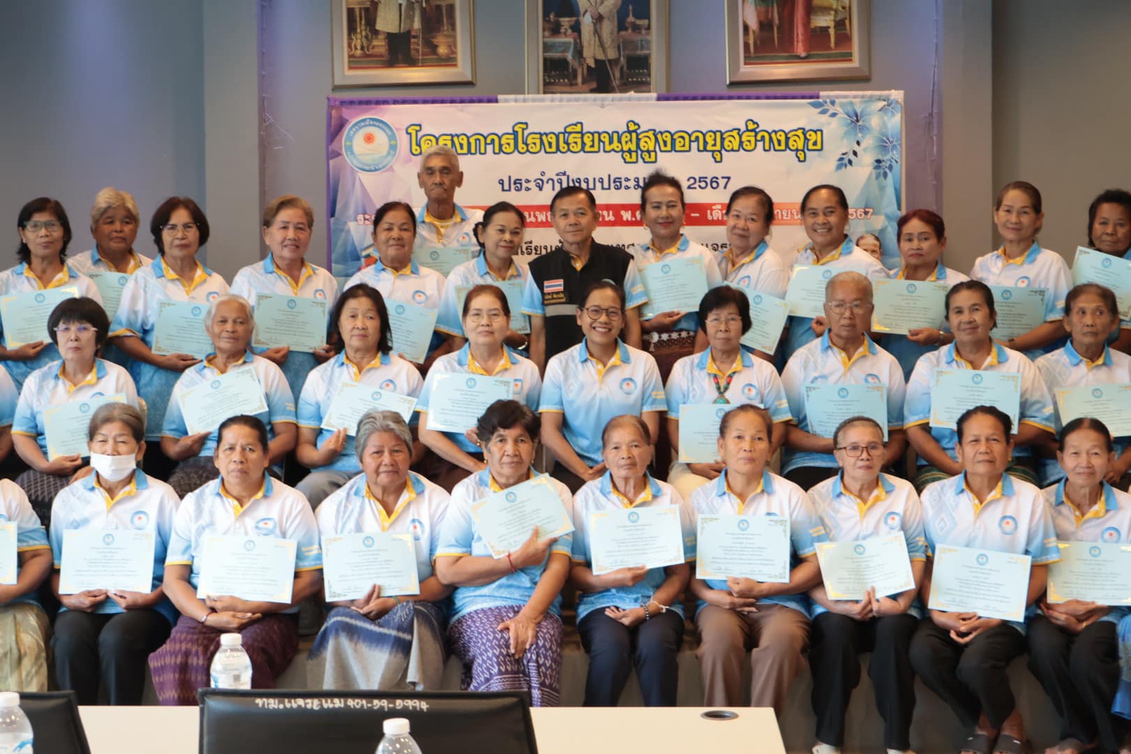 นางสาวกัลยา ลักษณะงาม นายกเทศมนตรีเมืองแจระแม พร้อมด้วยคณะผู้บริหารเทศบาล นายจรูญ ขวัญหวัญ ปลัดเทศบาล หัวหน้าส่วนราชการ พนักงานเทศบาลและเจ้าหน้าที่ ร่วมดำเนินกิจกรรมโรงเรียนผู้สูงอายุสร้างสุข รุ่นที่ 2 ครั้งที่ 11 ประจำปีงบประมาณ พ.ศ. 2567 โดยมีกิจกรรม ดังนี้ เวลา 09.00 น. บรรยาย หัวข้อการนวดบรรเทาอาการปวดเฉพาะส่วน การบริหารป้องกันข้อเข่าเสื่อมในผู้สูงอายุ วิทยากรโดย รพ.สต.หนองแก เวลา 11.00 น. พิธีมอบวุฒิบัตร จบการศึกษาของนักเรียนโรงเรียนผู้สูงอายุ รุ่นที่ 2 ประจำปี 2567 โดยเริ่มการเรียนการสอนตั้งแต่วันที่ 17 พฤศจิกายน 2566 จนจบหลักสูตรในวันที่ 20 กันยายน 2567 ซึ่งได้ผ่านการเรียนรู้อันแสดงถึงความอุตสาหะ ความตั้งใจเรียนตลอดหลักสูตร เพื่อเป็นการพัฒนาคุณภาพชีวิตและการเรียนรู้ตลอดชีวิตของผู้สูงอายุ สร้างเสริมสุขภาพที่ดีของผู้สูงอายุทั้งทางด้านร่างกายจิตใจอารมณ์และสังคม ณ ห้องประชุมสภาเทศบาลเมืองแจระแม อำเภอเมืองอุบลราชธานี จังหวัดอุบลราชธานี