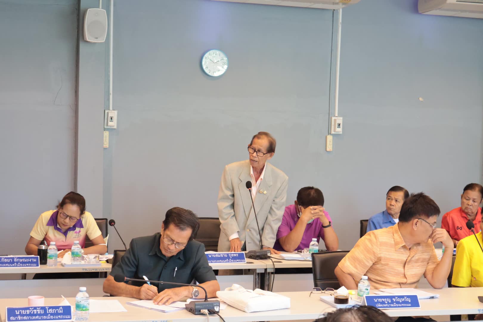 "ประชุมสภาเทศบาลเมืองแจระแม สมัยสามัญ สมัยที่สาม ครั้งที่ 3 ประจำปี พ.ศ. 2567" นายเสาร์ แสนสวัสดิ์ ประธานสภาเทศบาลเมืองแจระแม เป็นประธานในการประชุมสภาเทศบาลเมืองแจระแม สมัยสามัญ สมัยที่สาม ครั้งที่ 3 ประจำปี พ.ศ. 2567 โดยมี นางสาวกัลยา ลักษณะงาม นายกเทศมนตรีเมืองแจระแม พร้อมด้วยคณะผู้บริหารเทศบาล สมาชิกสภาเทศบาล ปลัดเทศบาล หัวหน้าส่วนราชการ และเจ้าหน้าที่ที่เกี่ยวข้อง เข้าร่วมการประชุมดังกล่าวโดยพร้อมเพรียงกัน ณ ห้องประชุมสภาเทศบาลเมืองแจระแม อำเภอเมืองอุบลราชธานี จังหวัดอุบลราชธานี