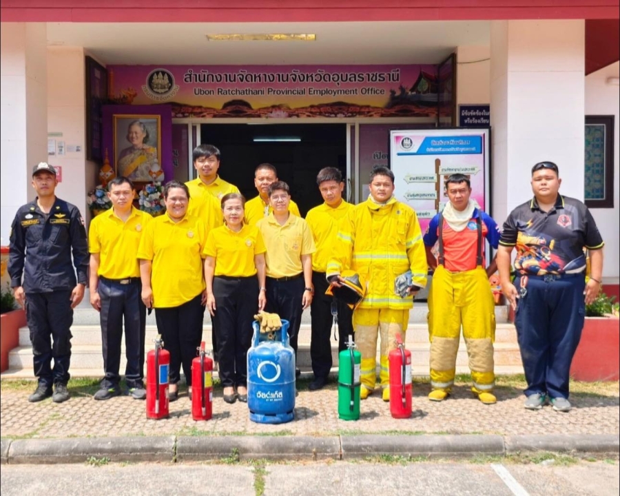 “งานป้องกันและบรรเทาสาธารณภัย อบรมให้ความรู้ฝึกซ้อมดับเพลิงขั้นต้นและอพยพหนีไฟ ให้กับสำนักงานจัดหางานจังหวัดอุบลราชธานี ”