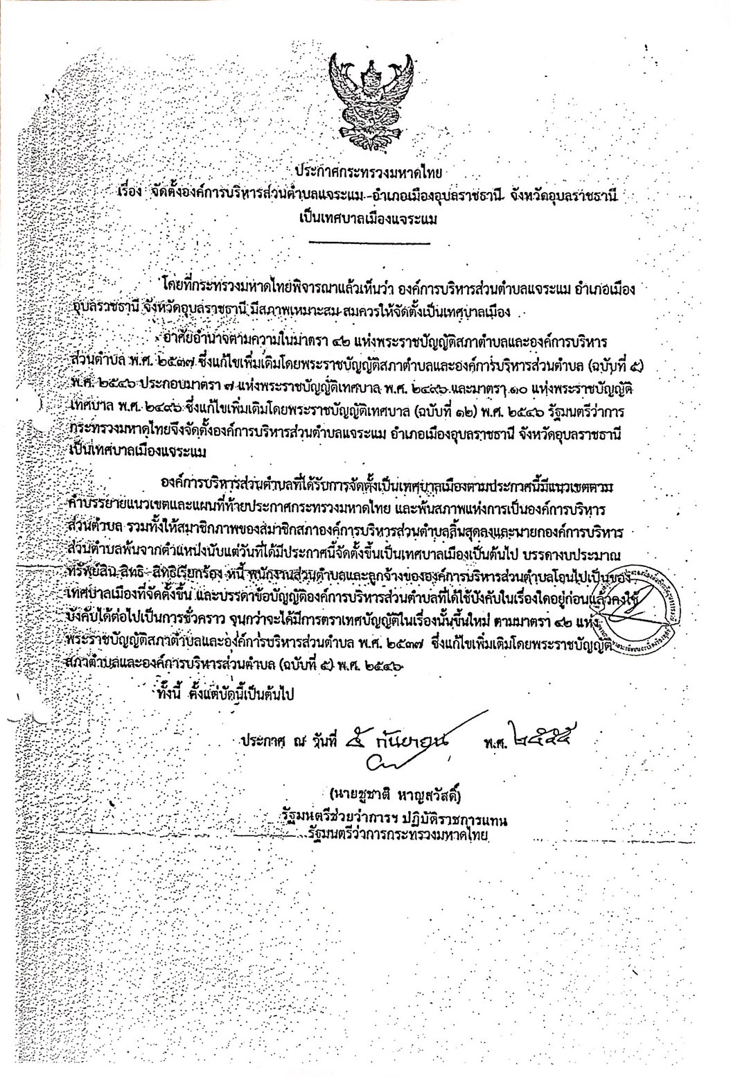 เรื่อง จัดตั้งองค์การบริหารส่วนตำบลแจระแม อำเภอเมืองอุบลราชธานี จังหวัดอุบลราชธานี