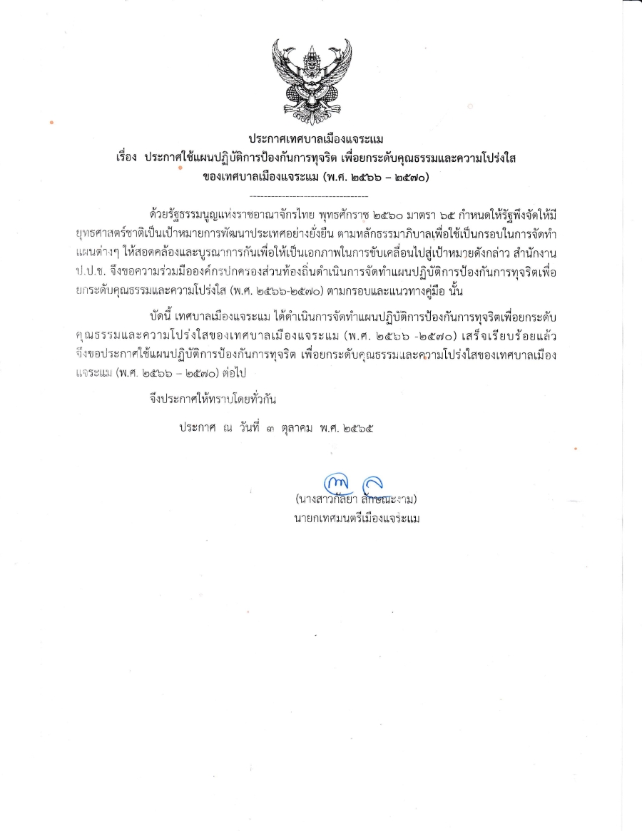 แผนปฏิบัติการ ป้องกันการทุจริต เพื่อยกระดับคุณธรรมและความโปร่งใสในการดำเนินงาน สำหรับองค์กรปกครองส่วนท้องถิ่น (พ.ศ. 2566 - 2570)