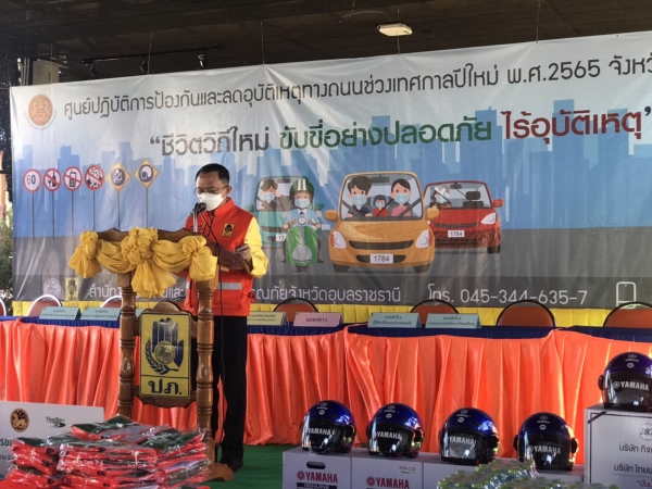 เทศบาลเมืองแจระแมเข้าร่วมงานเปิดศูนย์ปฏิบัติการป้องกันและลดอุบัติเหตุทางถนนช่วงเทศกาลปีใหม่ 2565 จังหวัดอุบลราชธานี