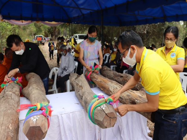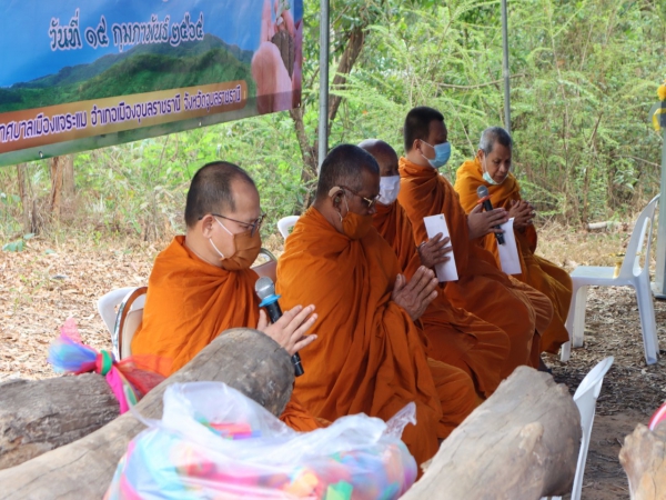 นายกเทศมนตรีเมืองแจระแม พร้อมคณะผู้บริหาร,สมาชิกสภาเทศบาล ,ปลัดเทศบาล , หัวหน้าส่วนราชการและผู้นำชุมชนในพื้นที่ตำบลแจระแมร่วมโครงการเฉลิมพระเกียรติการอนุรักษ์ทรัพยากรธรรมชาติและสิ่งแวดล้อม บุญหลักไม้แก่นจัดการที่ดินสาธารณะแบบมีส่วนร่วมตำบลแจระแม