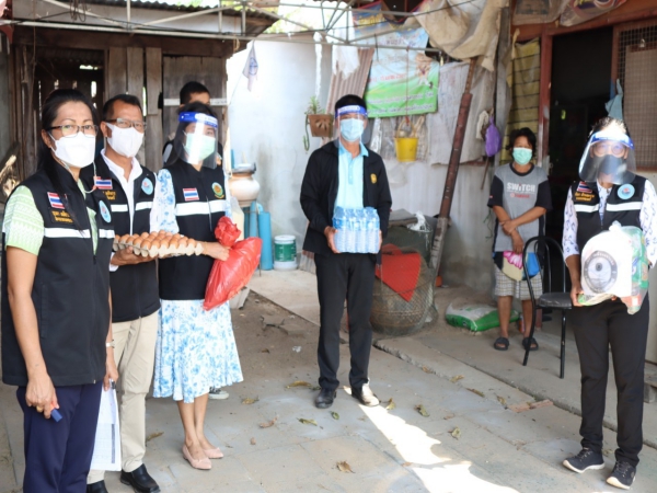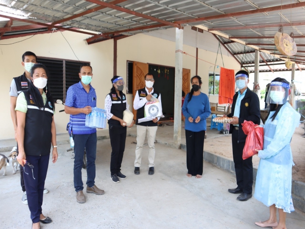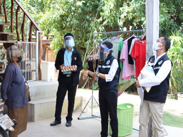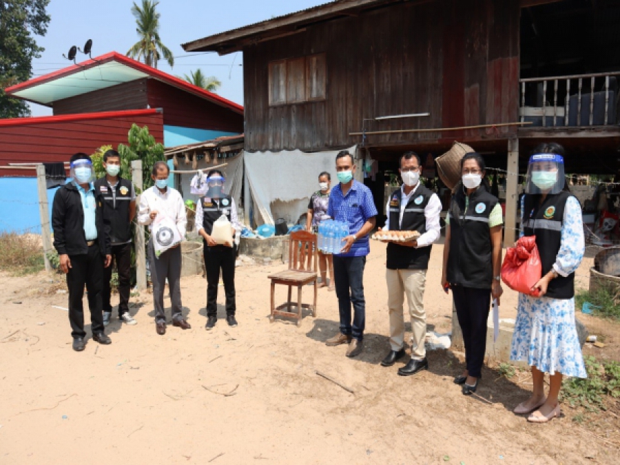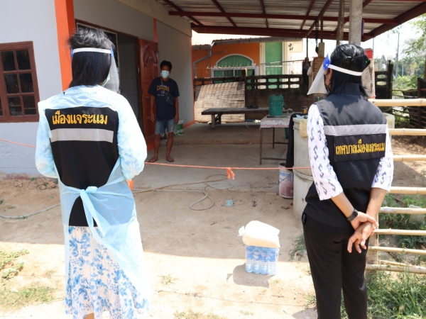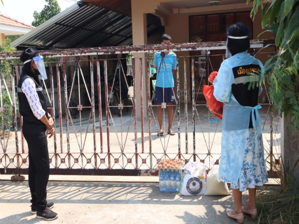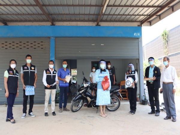 นายกเทศมนตรีเมืองแจระแม พร้อมคณะผู้บริหารร่วมมอบถุงยังชีพให้กับผู้ที่ติดเชื้อไวรัสโคโรนา 2019 (COVID-19) ที่รักษาตัวและกลุ่มเสี่ยงสัมผัสสูงในพื้นที่ตำบลแจระแม