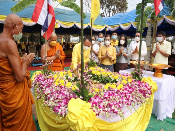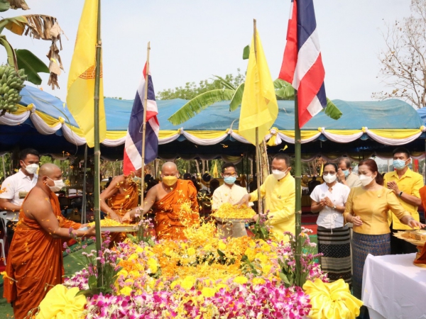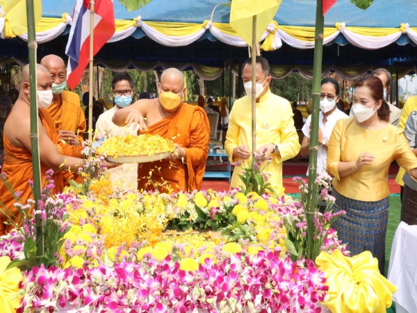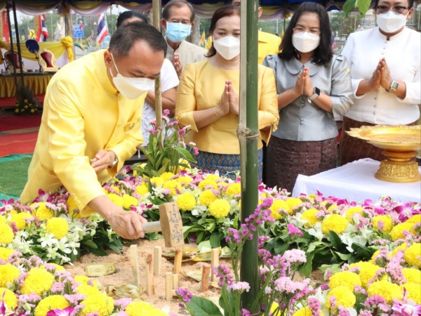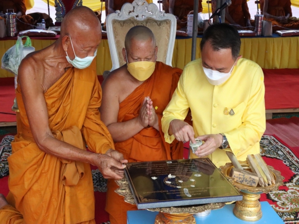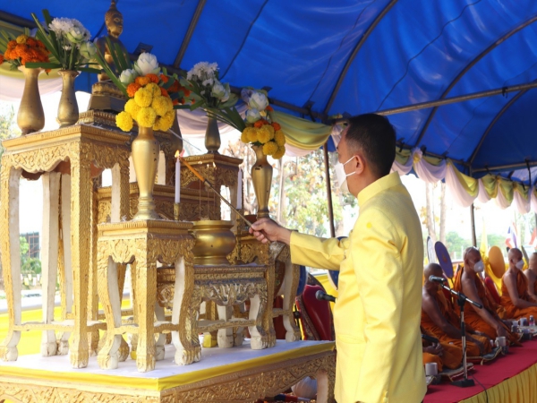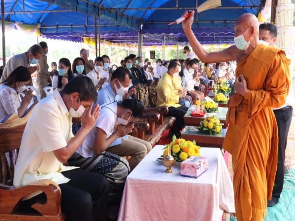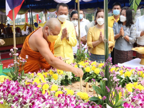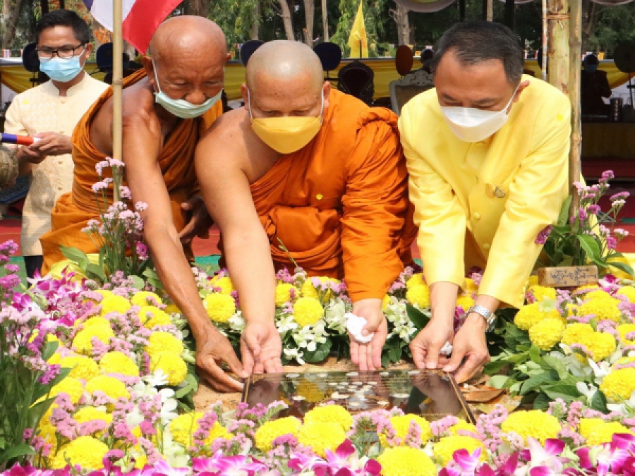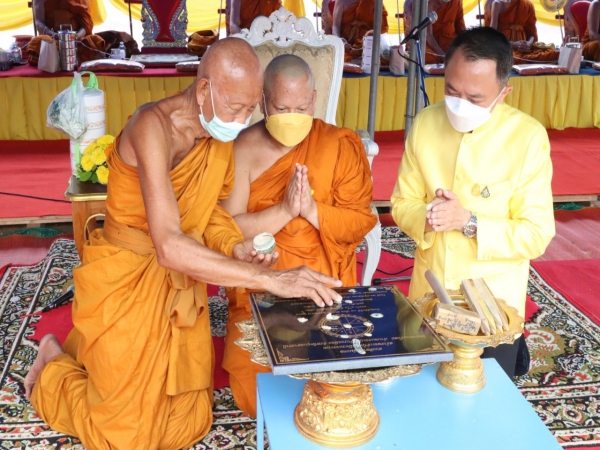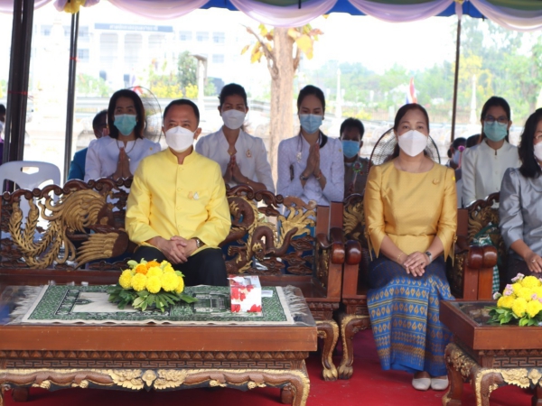 นายกเทศมนตรีเมืองแจระแม พร้อมคณะผู้บริหาร หัวหน้าส่วนราชการและพนักงานเทศบาลเมืองแจระแม เข้าร่วมพิธีวางศิลาฤกษ์ ก่อสร้างพระเจ้าใหญ่เมืองแจระแม ณ วัดหนองแกใหม่