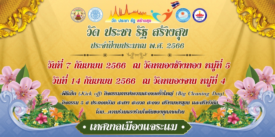 ขอเชิญเข้าร่วม "โครงการส่งเสริมการปลูกฝังวัฒนธรรม จริยธรรม" ตามแนวทาง วัด ประชา รัฐ สร้างสุข ประจำปีงบประมาณ พ.ศ. 2566