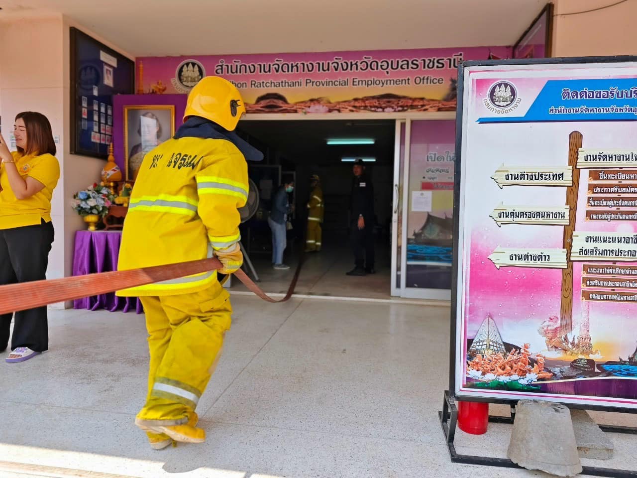 “งานป้องกันและบรรเทาสาธารณภัย อบรมให้ความรู้ฝึกซ้อมดับเพลิงขั้นต้นและอพยพหนีไฟ ให้กับสำนักงานจัดหางานจังหวัดอุบลราชธานี ”
