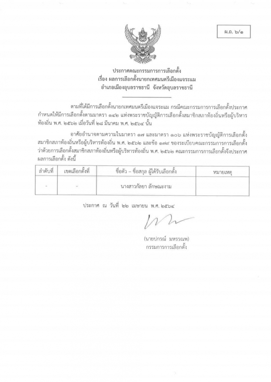 วันจันทร์, 03 พฤษภาคม 2564 14:48ประกาศคณะกรรมการการเลือกตั้ง