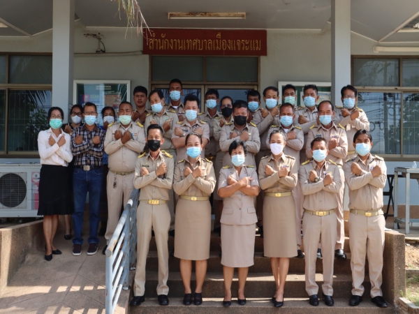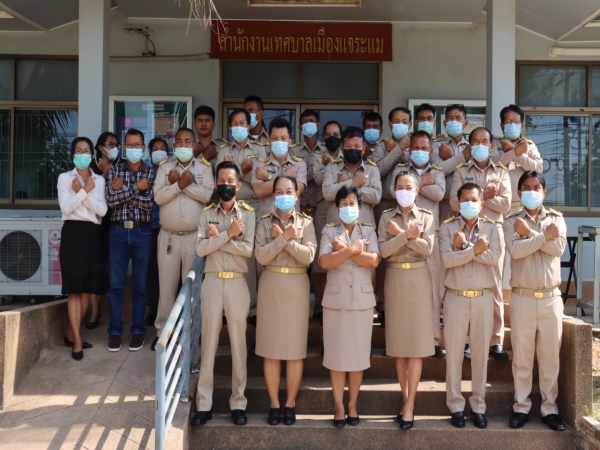 วันพุธ, 12 พฤษภาคม 2564 18:47วันพฤหัสบดีที่ 12 พฤษภาคม 2564 เทศบาลเมืองแจระแม นำโดย นางสาวกัลยา ลักษณะงาม นายกเทศมนตรีเมืองแจระแม พร้อมด้วย สมาชิกสภาเทศบาลเมืองแจระแมและข้าราชการ พนักงานร่วมแสดงออกเชิงสัญลักษณ์การประกาศเจตนารมณ์ในการต่อต้านการทุจริตคอร์รัปชั่น ณ บริเวณหน้าสำนักงานเทศบาลเมืองแจระแม