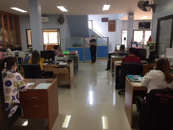 เจ้าหน้าที่กองสาธารณสุขและสิ่งแวดล้อม เทศบาลเมืองแจระแมพร้อมทีมงาน ออกให้ความรู้และคำแนะนำ ชี้แจงมาตรการในการปฏิบัติตัวในสถานการณ์โรคติดเชื้อไวรัสโคโรนา2019 ณ บ้านพักเด็กและครอบครัวอุบลราชธานี