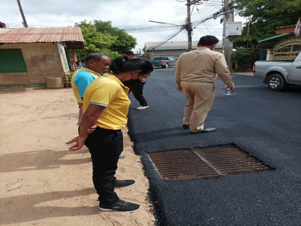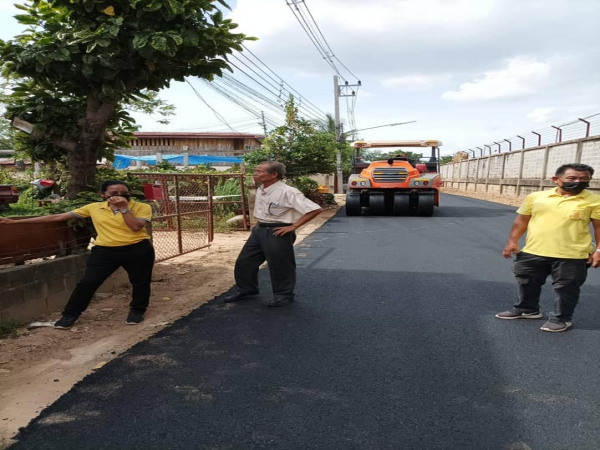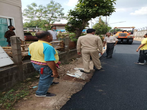 นายกเทศมนตรีเมืองแจระแม พร้อมคณะผู้บริหาร ลงพื้นที่ติดตามโครงการซ่อมแซมถนนบริเวณเส้นกลางบ้านทัพไทย หมู่ที่ 7