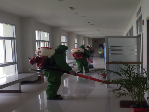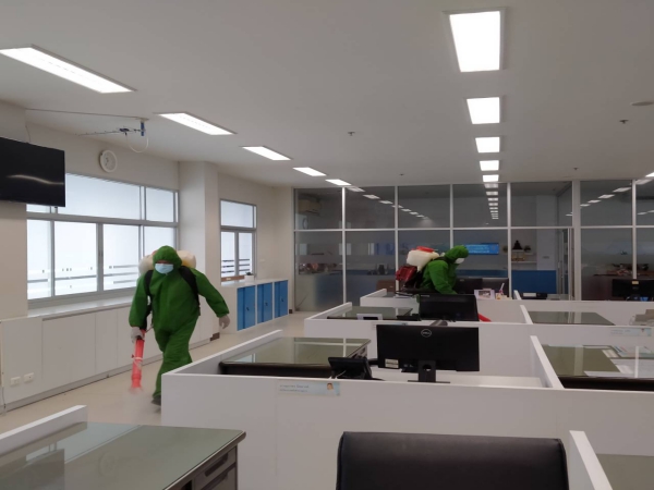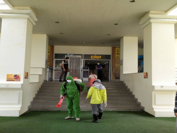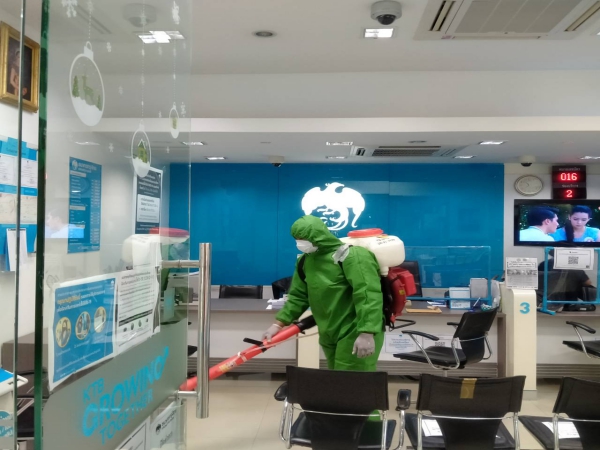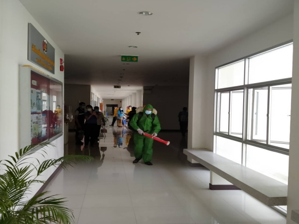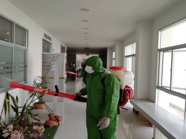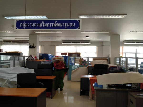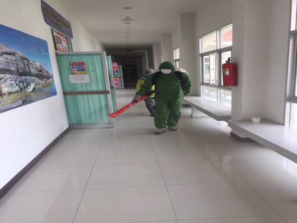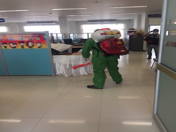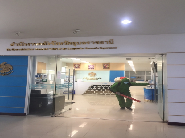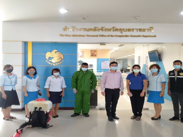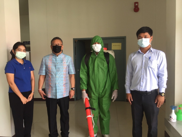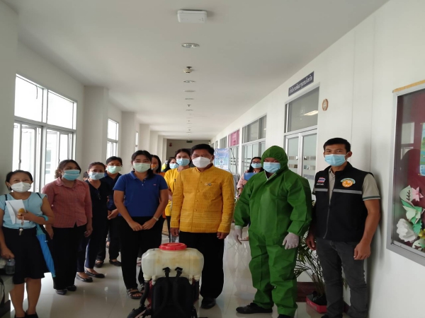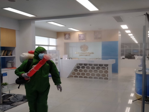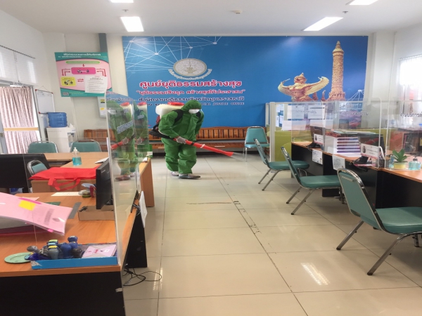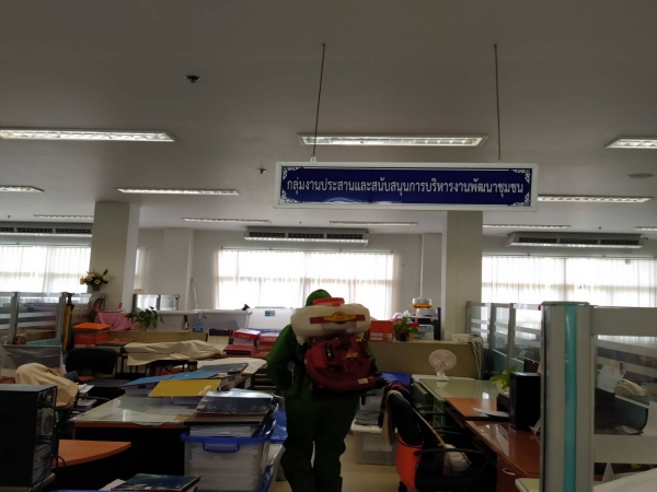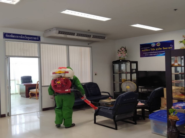 ฉีดพ่นยาฆ่าเชื้อเพื่อป้องกันการแพร่ระบาดของโรคติดเชื้อไวรัสโคโรนา ณ ห้องสำนักงานพัฒนาชุมชน ฯ