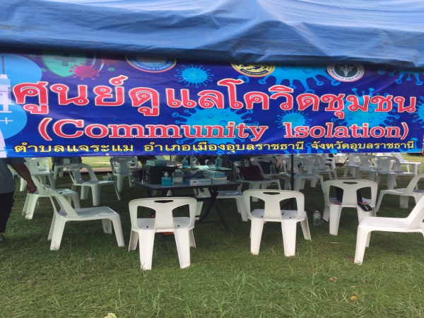 นายอำเภอเมืองอุบลราชธานี ร่วมกับสาธารณสุขอำเภอเมืองอุบลราชธานีลงพื้นที่ตรวจเยี่ยมและติดตามศูนย์ดูแลโควิดชุมชน(Community Isolation)ตำบลแจระแม