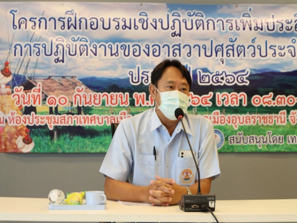 เทศบาลเมืองแจระแม จัดโครงการฝึกอบรมเชิงปฏิบัติการเพิ่มประสิทธิภาพการปฏิบัติงานของอาสาปศุสัตว์ประจำหมูบ้าน ประจำปี 2564