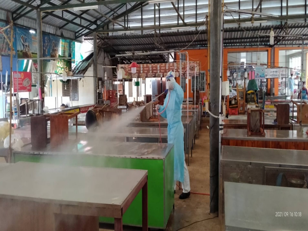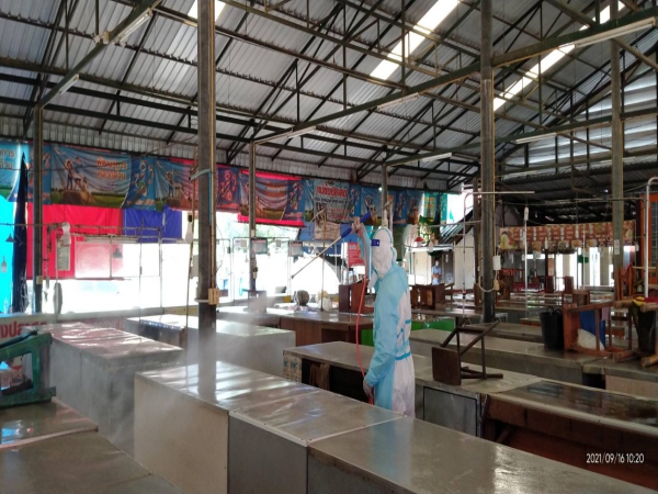 วันพฤหัสบดี, 16 กันยายน 2564 09:10วันพฤหัสบดีที่ 16 กันยายน 2564 นางสาวกัลยา ลักษณะงาม นายกเทศมนตรีเมืองแจระแม มอบหมายให้เจ้าหน้าที่กองสาธารณสุขและสิ่งแวดล้อม เทศบาลเมืองแจระแม ออกฉีดพ่นยาฆ่าเชื้อเพื่อป้องกันการแพร่ระบาดของโรคติดเชื้อไวรัสโคโรนา 2019 (COVID-19) บริเวณตลาดแจ้งสนิท , บ้านผู้สัมผัสเสี่ยงสูงและบริเวณอื่นๆที่มีความเสี่ยงต่อการแพร่ระบาดของโรคติดเชื้อไวรัสโคโรนา 2019 (COVID-19) ในพื้นที่ตำบลแจระแม