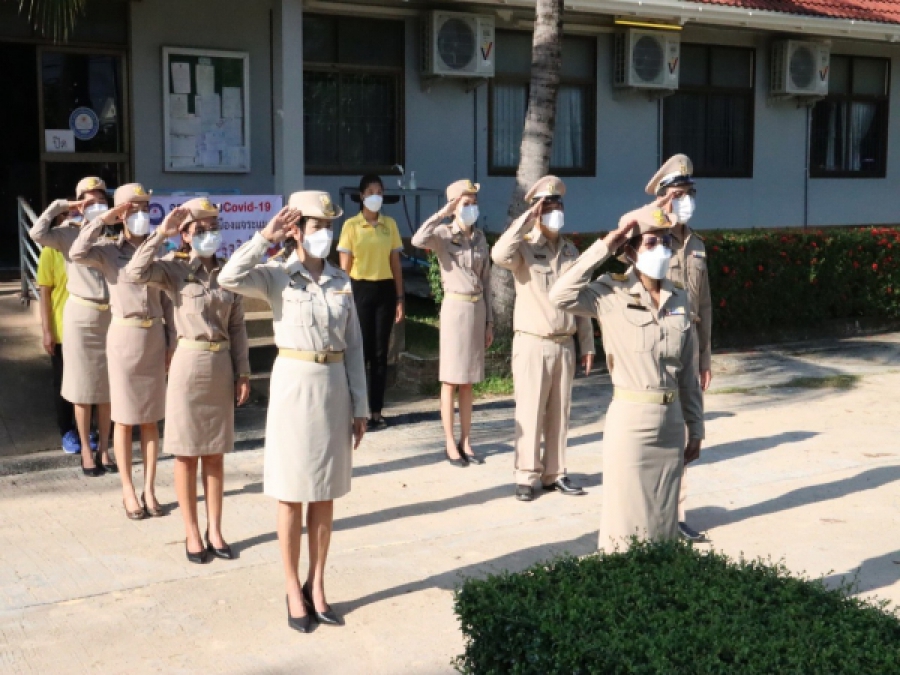 วันอังคาร, 28 กันยายน 2564 17:32วันอังคารที่ 28 กันยายน 2564 เวลา 08.00 น. ณ บริเวณหน้าเสาธงสำนักงานเทศบาลเมืองแจระแม นางสาวกัลยา ลักษณะงาม นายกเทศมนตรีเมืองแจระแม นำตัวแทนพนักงานและตัวแทนประชาชน ร่วมกิจกรรมเคารพธงชาติและร้องเพลงชาติไทย เนื่องในวันพระราชทานธงชาติไทย (Thai National Flag Day) เพื่อน้อมรำลึกในพระมหากรุณาธิคุณพระบาทสมเด็จพระมงกุฎเกล้าเจ้าอยู่หัวและเป็นการสร้างความภูมิใจในวันพระราชทานธงชาติไทย