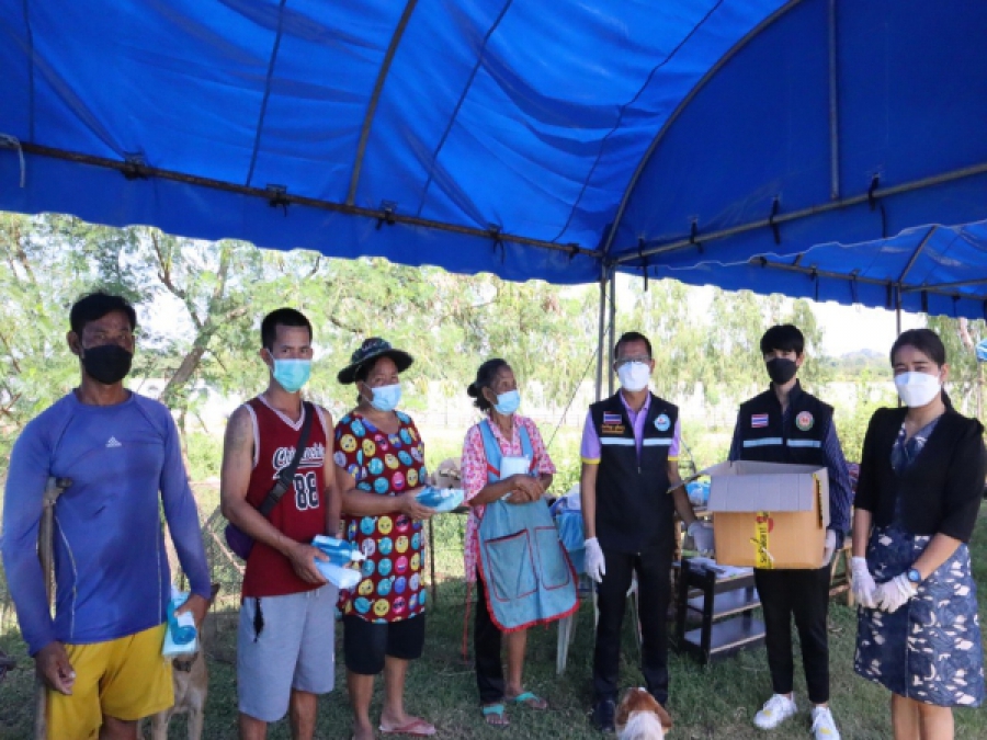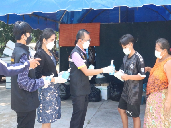 เทศบาลเมืองแจระแม มอบเจลแอลกอฮอร์ล้างมือพร้อมกับหน้ากากอนามัยให้กับประชาชนที่ได้รับผลกระทบจากอุทกภัย