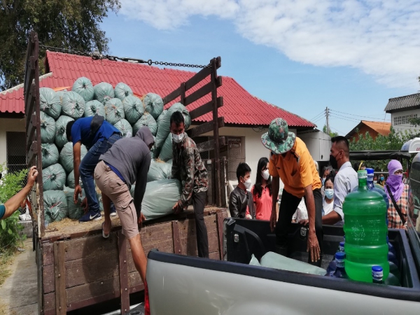 วันพฤหัสบดี, 11 พฤศจิกายน 2564 17:17วันพฤหัสบดีที่ 11 พฤศจิกายน 2564 ณ วัดบ้านหนองแกเก่า นายกิตติ กุบแก้ว ปศุสัตว์จังหวัดอุบลราชธานี พร้อมด้วยนางสาวจิราวรรณ ปามุทา ปศุสัตว์อำเภอเมืองอุบลราชธานี และศูนย์วิจัยและพัฒนาอาหารสัตว์อำนาจเจริญ ร่วมกับ เทศบาลเมืองแจระแมนำโดยนางสาวกัลยา ลักษณะงาม นายกเทศมนตรีเมืองแจระแม และคณะผู้บริหารร่วมส่งมอบอาหารข้น (MTR) จำนวน 9,000 กิโลกรัม ให้กับเกษตรกรในพื้นที่ตำบลแจระแม ทั้ง 10 หมู่บ้าน เพื่อเป็นเสบียงสำรอง สำหรับช่วยเหลือเกษตรกร ผู้เลี้ยงโค กระบือ ที่ได้รับผลกระทบจากอุทกภัย