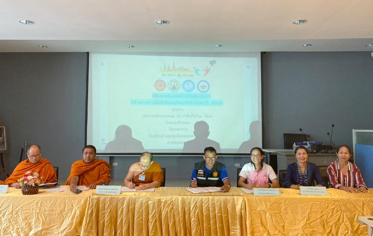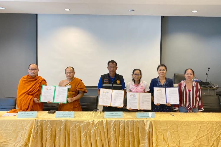 วันที่ 30 สิงหาคม 2566 เวลา 13.30 น. นางสาวกัลยา ลักษณะงาม นายกเทศมนตรีเมืองแจระแม พร้อมด้วยคณะผู้บริหาร หัวหน้าส่วนราชการ พนักงานและเจ้าหน้าที่กองการศึกษา ร่วมประชุมคณะกรรมการขับเคลื่อนการดำเนินงานโครงการวัด ประชา รัฐ สร้างสุข เพื่อการพัฒนาที่ยั่งยืน ระยะ 5 ปี (พ.ศ.2566-2570) และร่วมพิธีลงนามบันทึกข้อตกลง (MOU) ว่าด้วยความร่วมมือดำเนินงานโครงการ วัด ประชา รัฐ สร้างสุข เพื่อการพัฒนาที่ยั่งยืน ระหว่าง เทศบาลเมืองแจระแม กับ ภาคีเครือข่าย ได้แก่ วัดหนองช้างทอง วัดหนองจาน โรงเรียนบ้านทุ่งขุนน้อยหนองจานวิทยา และภาคประชาชน วัตถุประสงค์เพื่อขับเคลื่อนการดำเนินงานโครงการวัด ประชา รัฐ สร้างสุข พัฒนาวัดด้วยแนวทาง 3-5-7-9 คือ 3 พันธกิจ 5ส 7 ขั้นตอน 9 พื้นที่ ที่ทุกภาคส่วนมีส่วนร่วม เพื่อการจัดสิ่งแวดล้อมที่เอื้อต่อสุขภาพ รวมถึงกิจกรรมเชิงพุทธ วัดมีความมั่นคง ชุมชนมีความเข้มแข็ง ณ ห้องประชุมสภาเทศบาลเมืองแจระแม