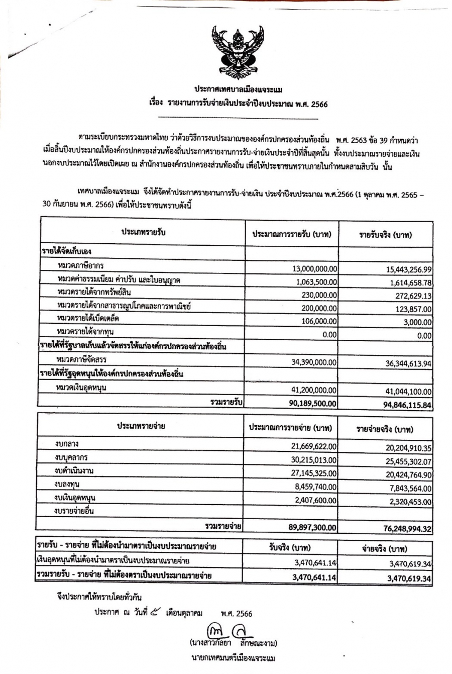 รายงานการรับจ่ายเงินประจำปีงบประมาณ พ.ศ. 2566 วันจันทร์, 09 ตุลาคม 2566 11:04 font size decrease font size increase font size Print Email ประกาศเทศบาลเมืองแจระแม เรื่อง รายงานการรับจ่ายเงินประจำปีงบประมาณ พ.ศ. 2566 back to top