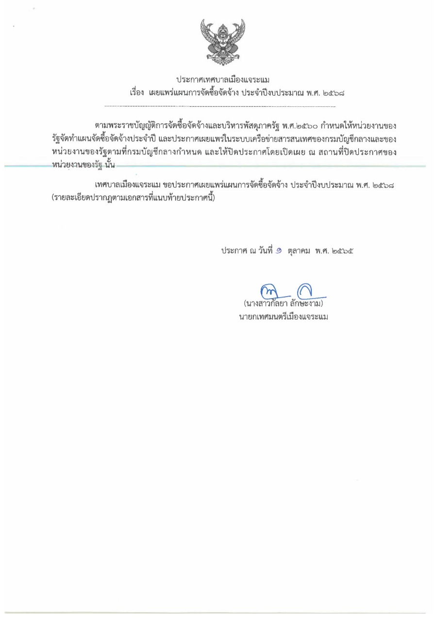 ประกาศเผยแพร่แผนการจัดซื้อจัดจ้าง ประจำปีงบประมาณ พ.ศ. 2568 วันอังคาร, 22 ตุลาคม 2567 13:04 Print Email ประกาศเทศบาลเมืองแจระแม เรื่อง เผยแพร่แผนการจัดซื้อจัดจ้าง ประจำปีงบประมาณ พ.ศ.2568 ดาวน์โหลดเอกสาร procurementZplanZ2568.pdf (0 Downloads) back to top