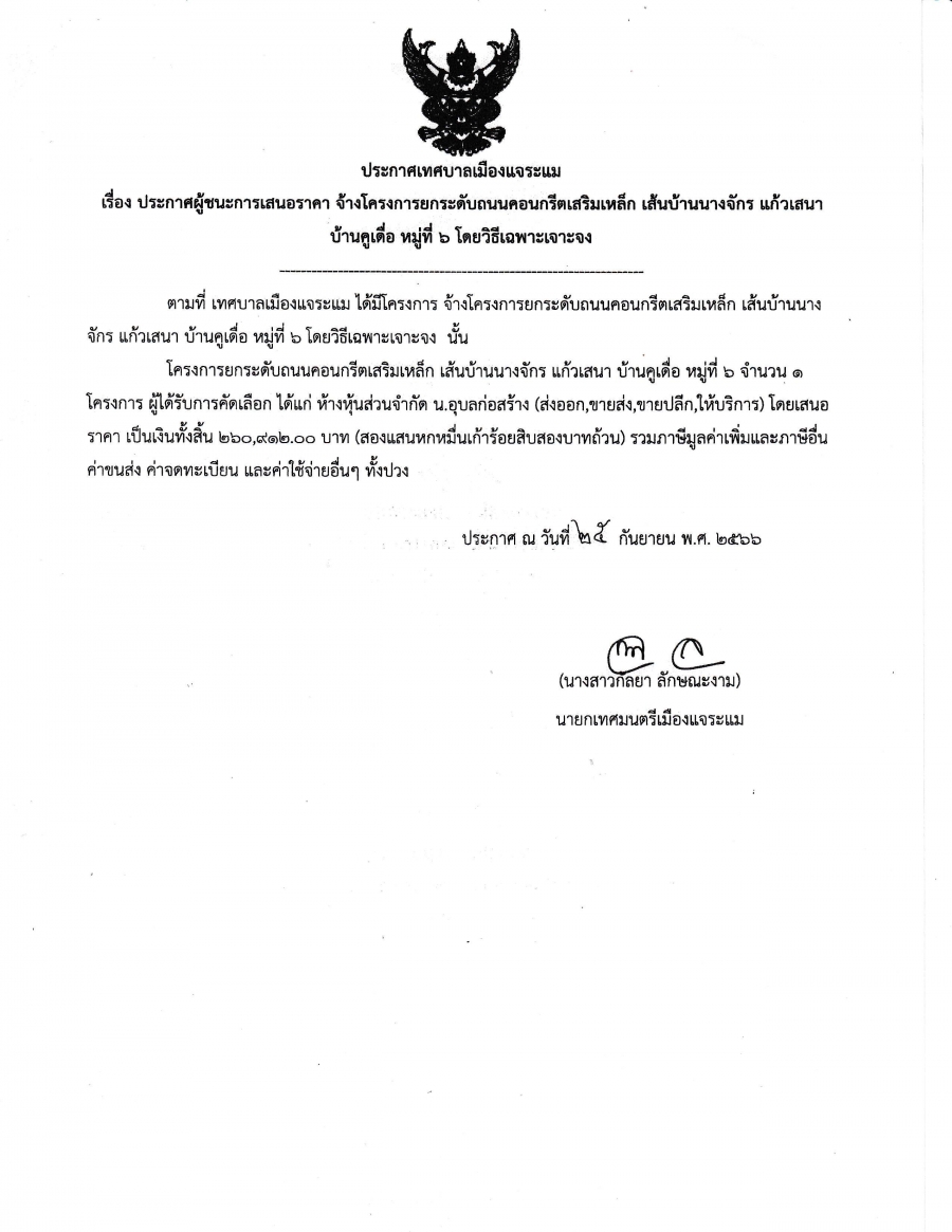 วันจันทร์, 25 กันยายน 2566 16:25ประกาศเทศบาลเมืองแจระแม