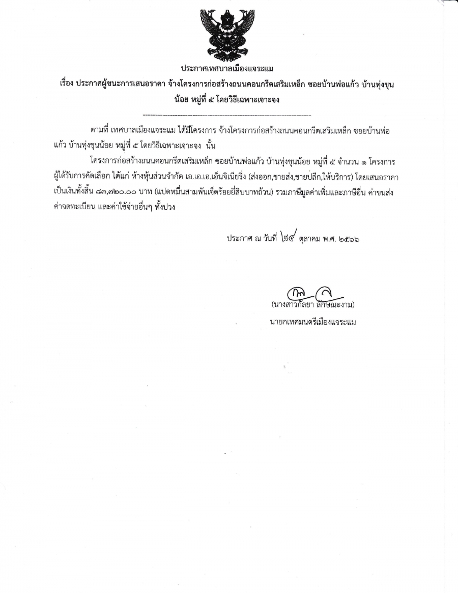 วันอังคาร, 24 ตุลาคม 2566 16:14ประกาศเทศบาลเมืองแจระแม