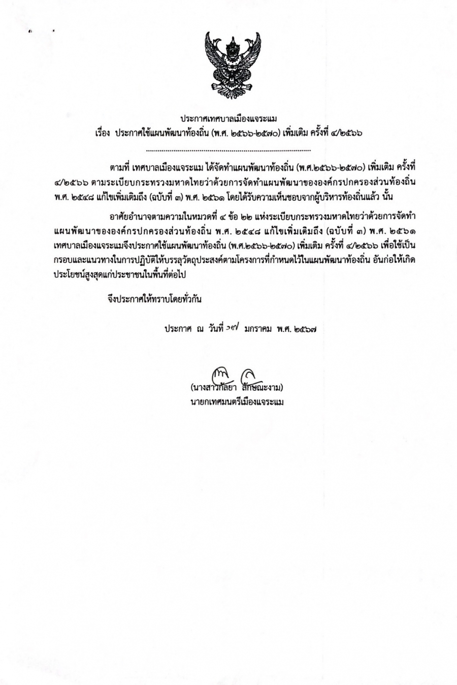 แผนพัฒนาท้องถิ่น (พ.ศ. 2566 - พ.ศ. 2570) เพิ่มเติม ครั้งที่ 4/2566