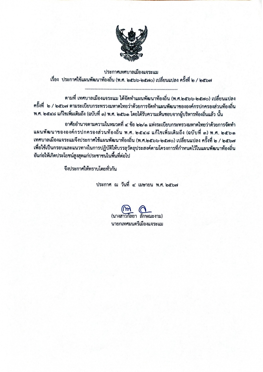 แผนพัฒนาท้องถิ่น ( พ.ศ.2566 - พ.ศ. 2570 ) เปลี่ยนแปลง ครั้งที่ 2/2567 วันศุกร์, 05 เมษายน 2567 18:40 Print Email ประกาศใช้แผนพัฒนาท้องถิ่น (พ.ศ.2566 - พ.ศ.2570) เปลี่ยนแปลง ครั้งที่ 2/2567 back to top