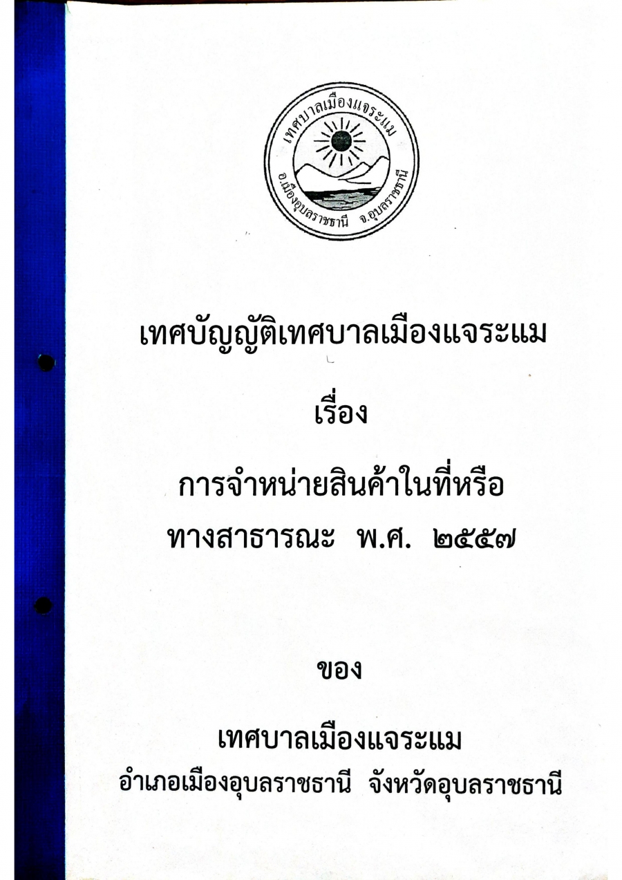 เทศบัญญัติเทศบาลเมืองแจระแม เรื่อง การจำหน่ายสินค้าในที่หรือทางสาธารณะ พ.ศ. 2557 วันจันทร์, 22 มกราคม 2567 15:34 Print Email ดาวน์โหลดเอกสาร Municipal-regulations-on-the-sale-of-goods-in-public-places-or-roads-2557.pdf (0 Downloads) back to top