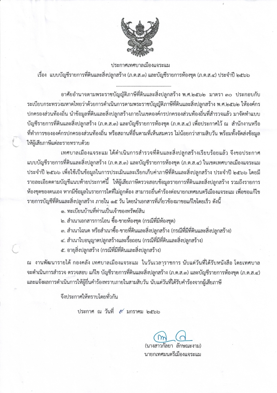 แบบบัญชีรายการที่ดินและสิ่งปลูกสร้าง (ภ.ด.ส.3)และบัญชีรายการห้องชุด (ภ.ด.ส.4) ประจำปี 2566 ชุดที่ 2 บัญชีรายการห้องชุด (ภ.ด.ส.4)