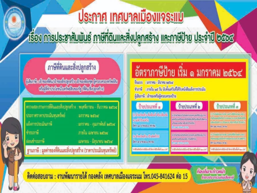 ประชาสัมพันธ์การชำระภาษี ประจำปี 2564 วันพฤหัสบดี, 24 ธันวาคม 2563 09:36 Print Email ประชาสัมพันธ์การชำระภาษี ประจำปี 2564 ดาวน์โหลดเอกสาร 418928.jpg (0 Downloads) back to top